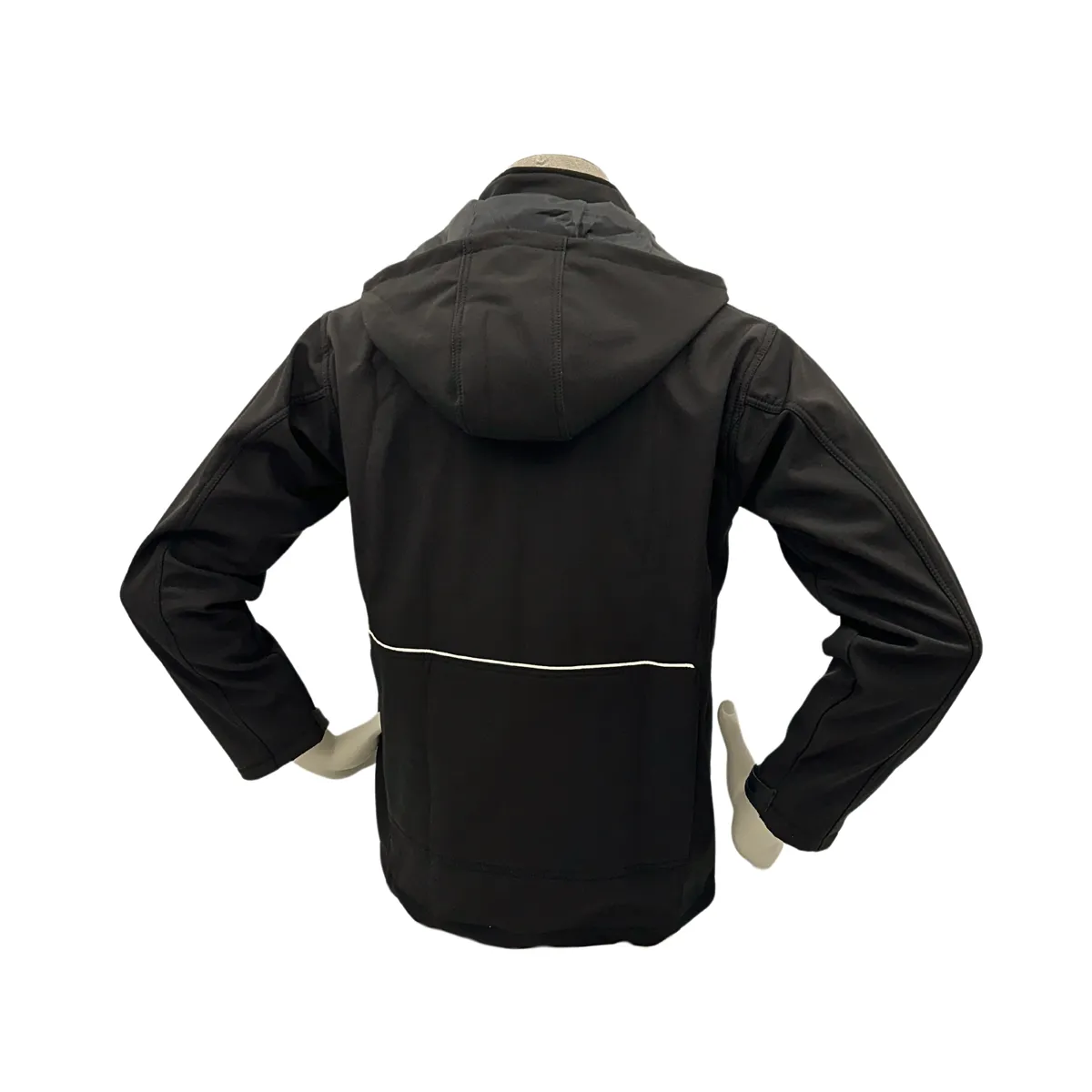 Softshell jas zwart met afneembare capuchon.